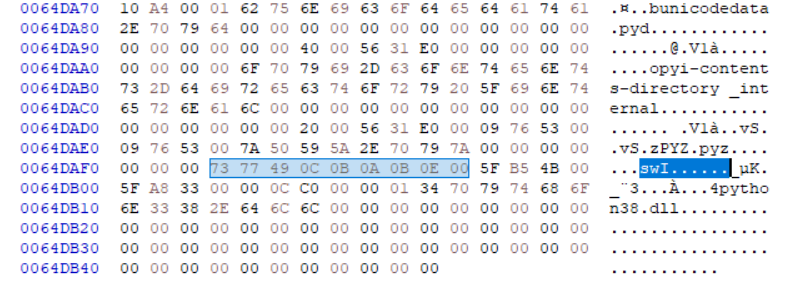 但事后仔细想想,就算是压缩后的文件头,凭什么就不能搜索试试看呢?自己为什么没有往这方面想?或许是自己潜意识中,复杂的压缩算法意味着第三方库或者复杂的自定义模块,从而没有很容易地想到搜索。如果自己真的找到了某个压缩模块,一步步跟踪调用链,或许也会有新的发现。不管怎样,都是值得一试的。